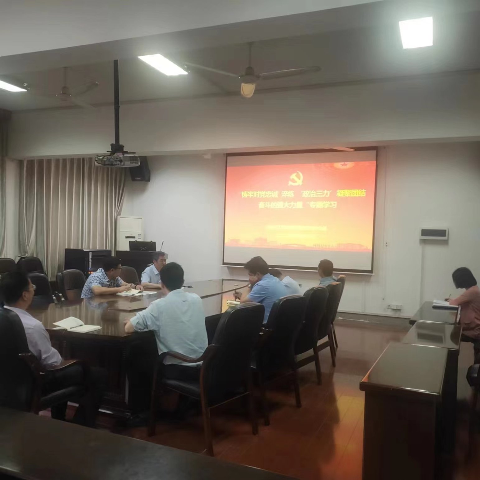 5月16日上午,yl88858永利集团党委理论学习中心组在化工楼310会议室举行“铸牢对党忠诚淬炼‘政治三力’凝聚团结奋斗的强大力量”专题集中学习,院党委书记周文革主持。