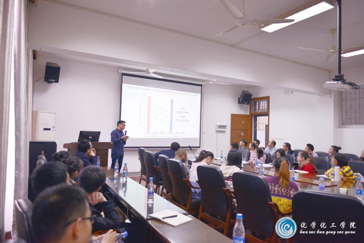 六、11月3日下午2:00-5:30,我院优秀校友西湖大学博士生导师刘志常教授和中山大学康明亮副教授在化工楼310学术报告厅分别作了以“基于α-环糊精外层配位机理的黄金绿色提取新技术”和“走进核科学”为主题的学术报告。