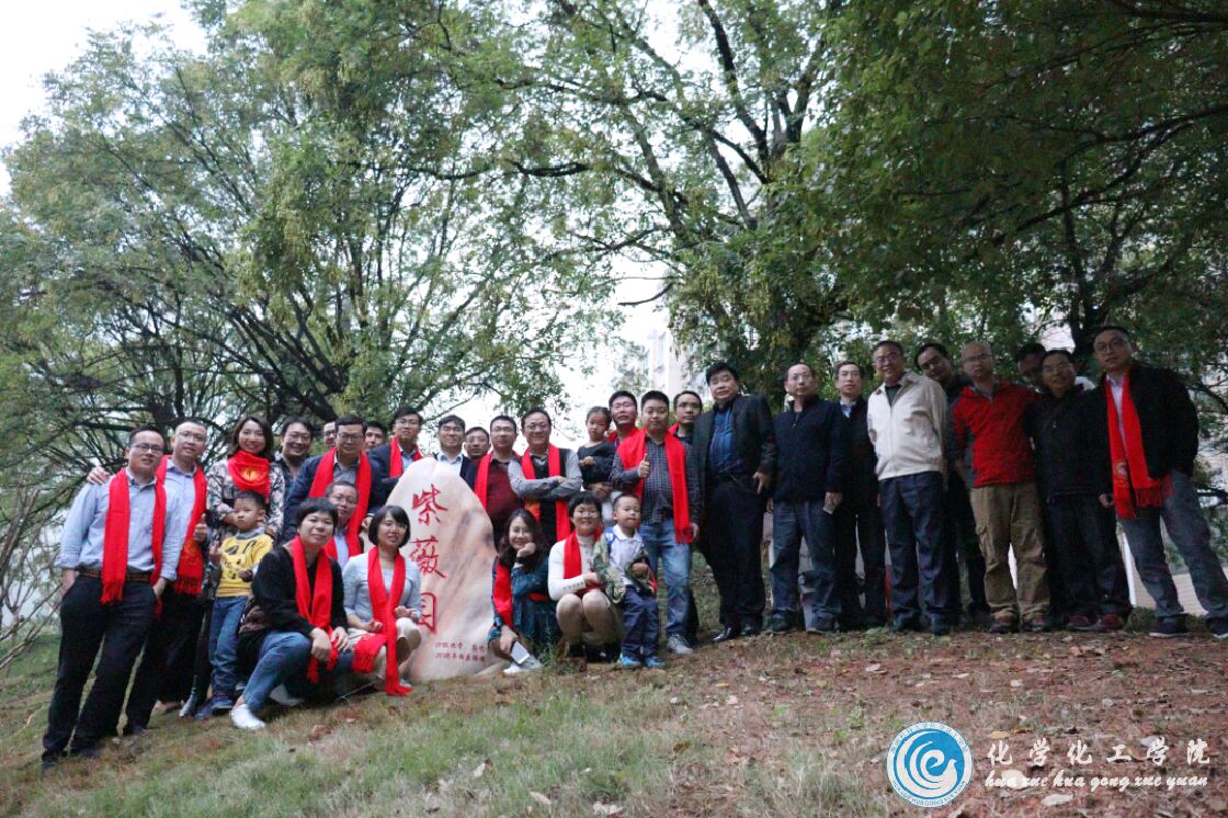 七、11月3日下午5:30,01级化学和应化专业的校友在化工楼前坪进行紫薇园剪彩仪式,大家合影留念,场面温馨。